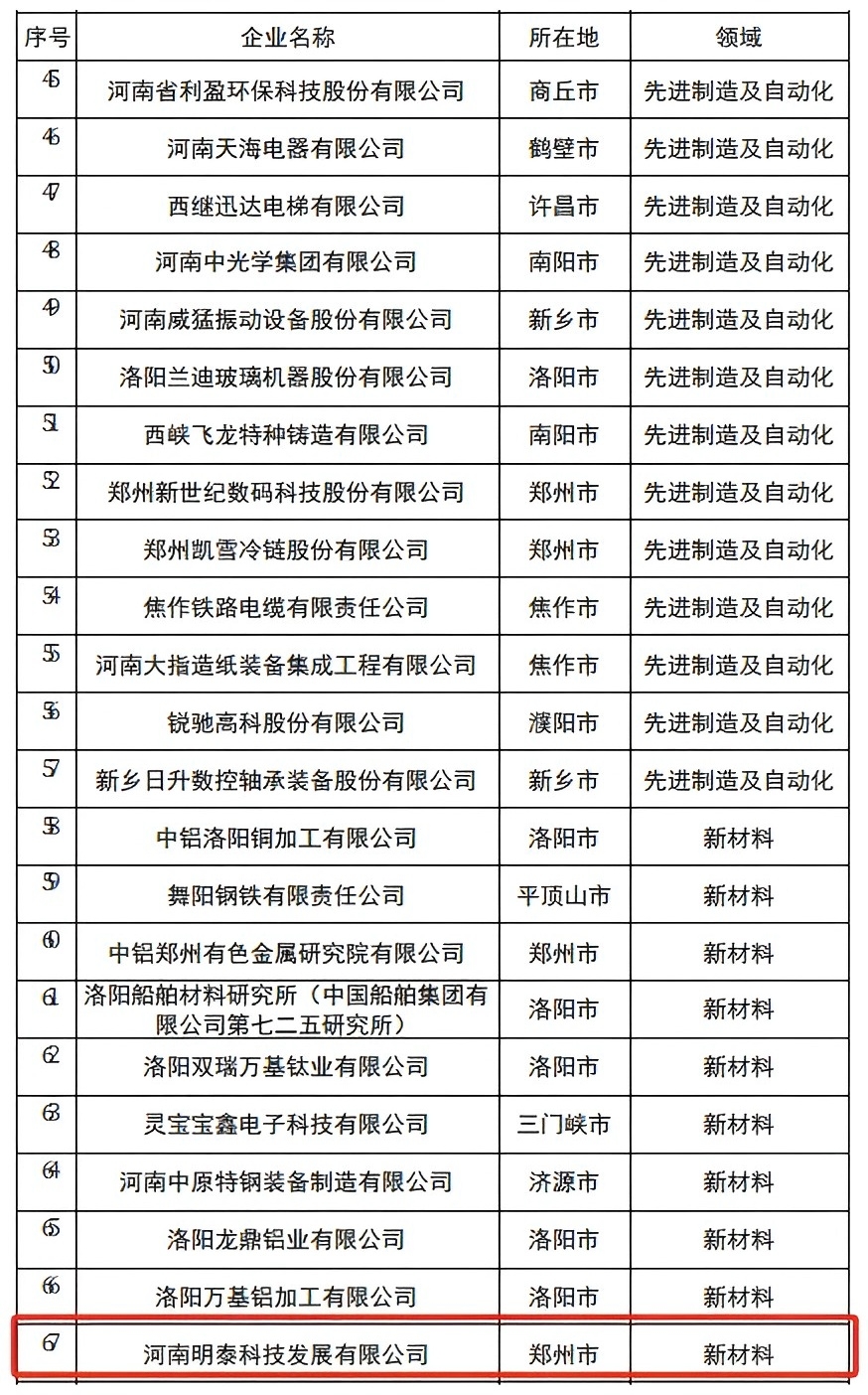 近日,河南省科技廳、省發(fā)展改革委、省財(cái)政廳、省稅務(wù)局對2024年度河南省創(chuàng)新龍頭企業(yè)名單進(jìn)行公示,河南明泰科技發(fā)展有限公司(以下簡稱“明泰科技”) 成功入選2024年度河南省創(chuàng)新龍頭企業(yè)名單。