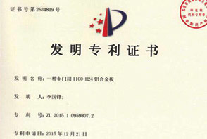 汽車用鋁專利證書